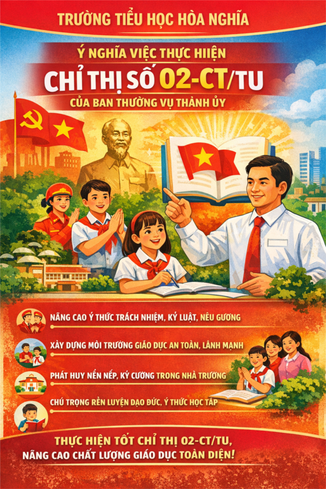 🌱 Thực hiện tốt Chỉ thị số 02-CT/TU chính là nền tảng quan trọng để Trường Tiểu học Hòa Nghĩa phát triển bền vững, góp phần vào sự nghiệp giáo dục và đào tạo của địa phương.