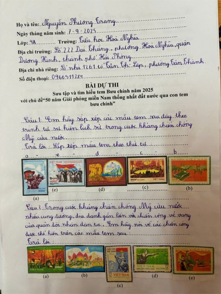 Thực hiện kế hoạch tổ chức cuộc thi sưu tập và tìm hiểu Tem Bưu chính năm 2025 với chủ đề "50 năm Giải phóng miền Nam thống nhất đất nước qua con tem bưu chính", Liên đội Tiểu học Hòa Nghĩa triển khai cuộc thi đến toàn thể học sinh.