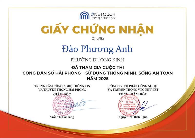 Thực hiện chỉ đạo của Đoàn phường Dương Kinh và Ban Chỉ đạo Chuyển đổi số của nhà trường, nhằm lan tỏa tinh thần chuyển đổi số trong giáo dục, 100% đoàn viên Chi đoàn Trường Tiểu học Hòa Nghĩa đã nghiêm túc triển khai thực hiện Cuộc thi “Công dân số Hải Phòng – Sử dụng thông minh, sống an toàn” theo hướng dẫn của cấp trên, đảm bảo đúng tiến độ và đạt hiệu quả tuyên truyền cao.
