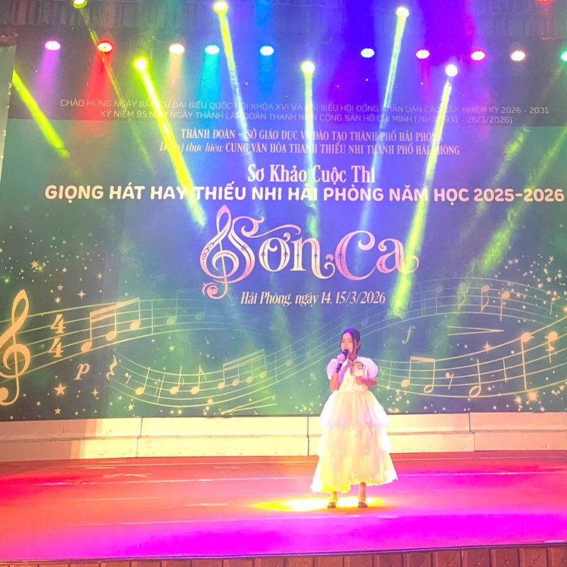 Trường Tiểu học Hòa Nghĩa xin gửi lời chúc mừng và biểu dương em Nguyễn Thanh Thanh – học sinh lớp 5A đã tự tin hoàn thành phần thi tại vòng Sơ khảo cuộc thi “Tiếng hát hay thiếu nhi Hải Phòng – Năm học 2025–2026” với ca khúc “Bát cơm mặn” đầy cảm xúc.