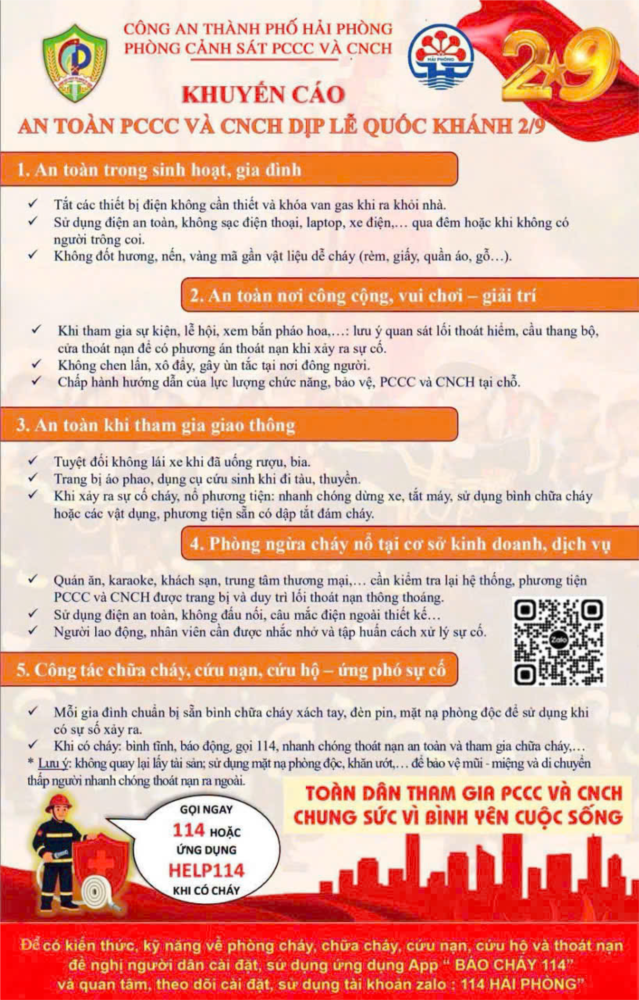 🎉 KHUYẾN CÁO AN TOÀN PCCC VÀ CNCH DỊP LỄ QUỐC KHÁNH 2/9 🎉