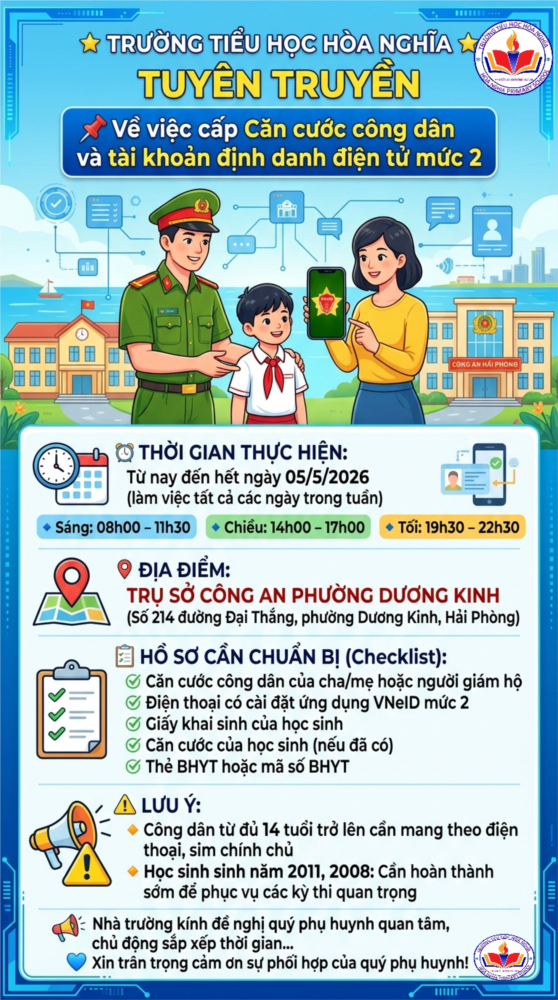📣 Nhà trường kính đề nghị quý phụ huynh quan tâm, chủ động sắp xếp thời gian đưa các em học sinh tham gia đầy đủ, góp phần xây dựng nền hành chính số hiện đại, tiện ích.